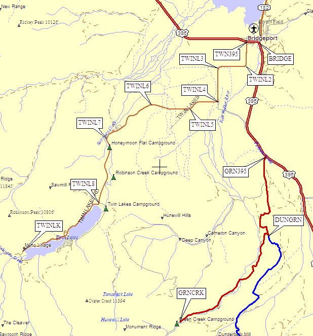 View the waypoint file (above) for GPS Routes TWIN LAKES and HWY 395 TAHOE TO BRIDGEPORT.