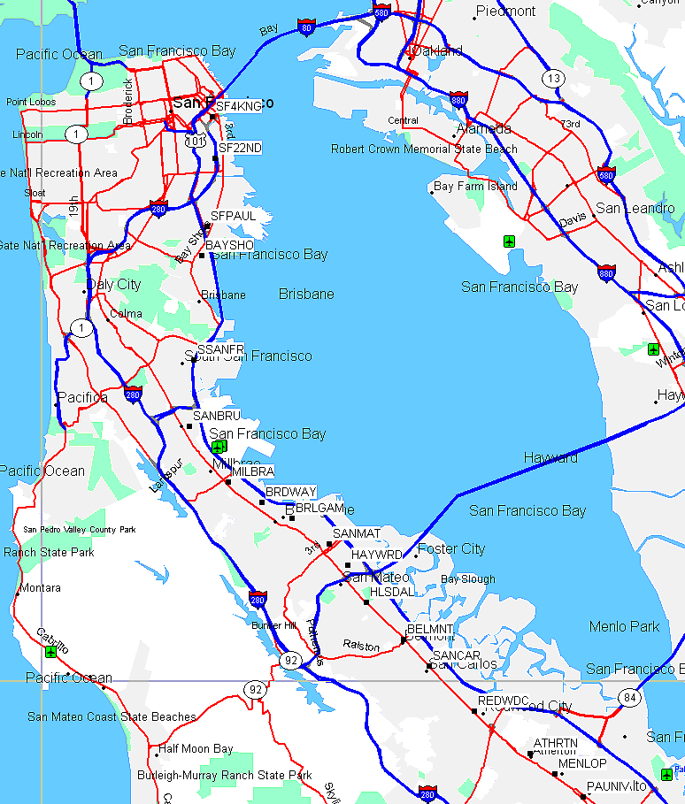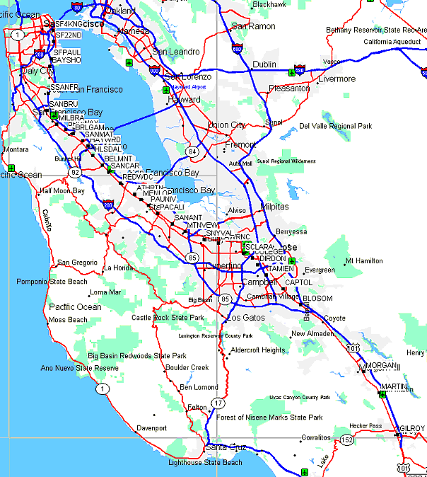 | Redwood City | James Ave & California St, Redwood City Next to Sequoia Station shopping center, south of Broadway and NE of El Camino in downtown Redwood City. | REDWDC waypoint | |