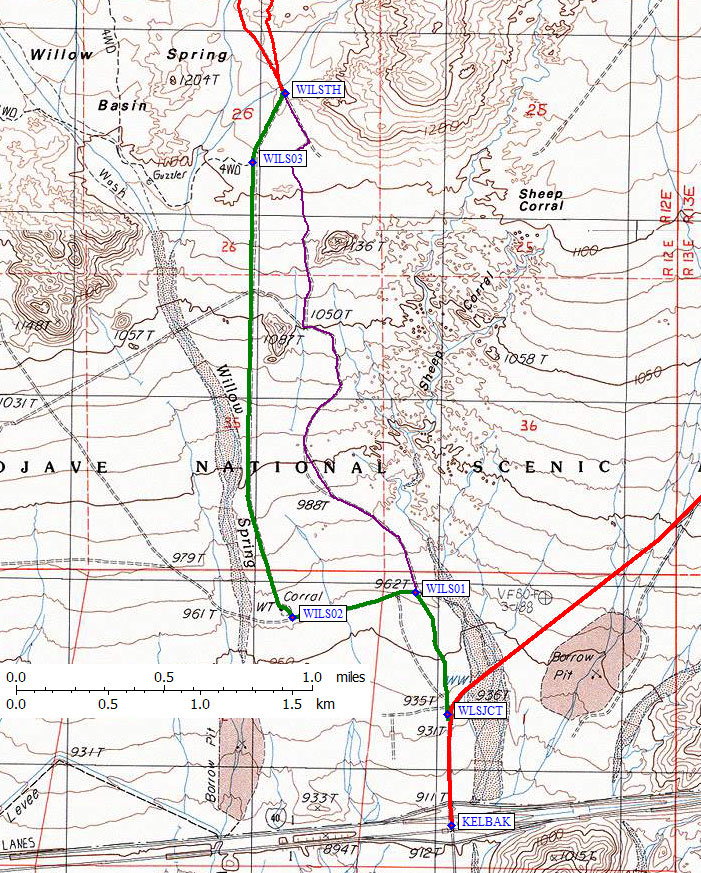 Southern Approach (tracks, waypoints, and text by Matt Hengst): Leave the paved Kelbaker Road,