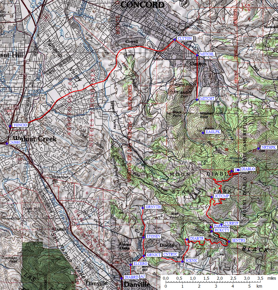All three trailheads and the three local peaks (route DIABLO PEAKS)