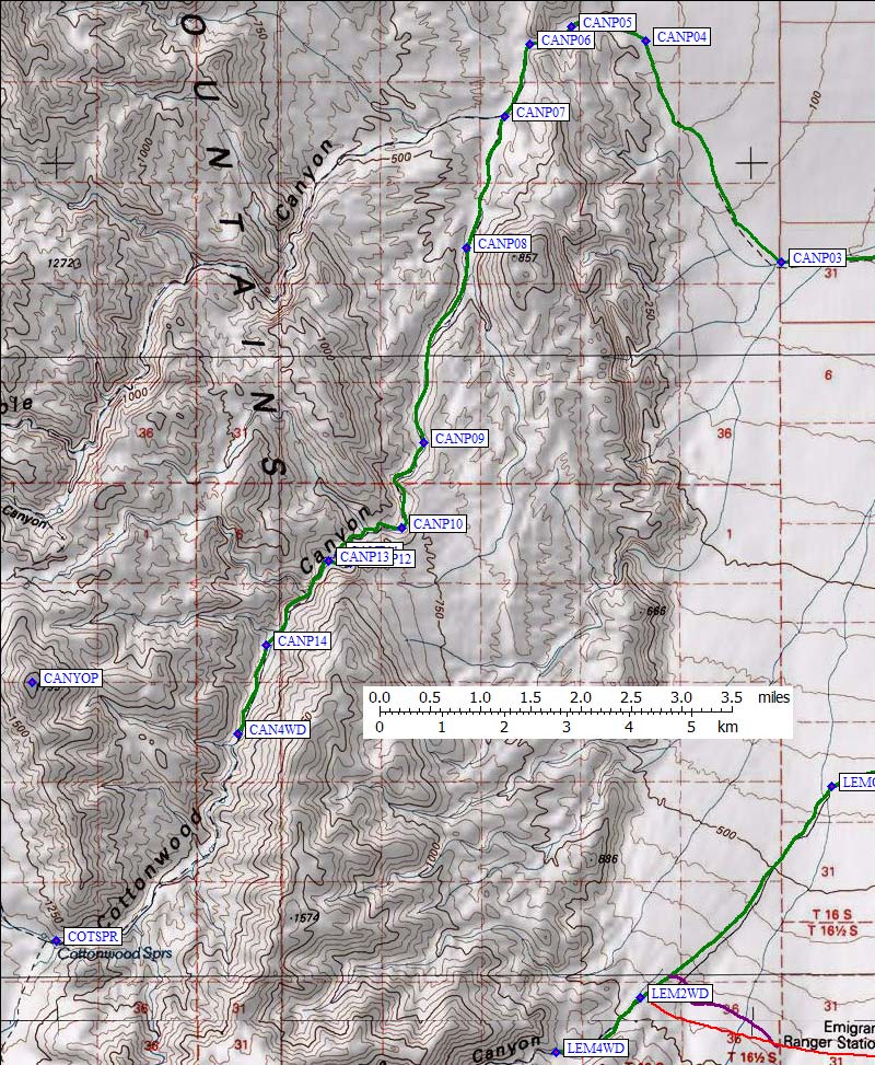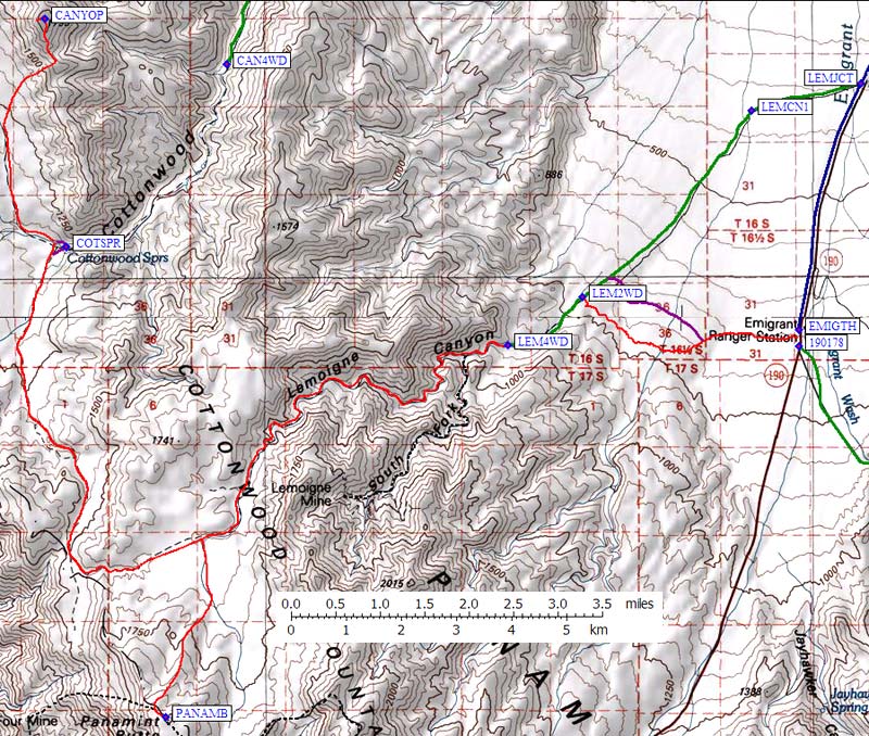 for waypoints and details of Lemoigne Canyon and the backpack to Cottonwood Springs.
