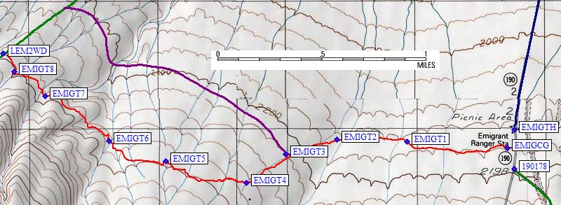 The former Emigrant Ranger Station (waypoint EMIGTH) is on Hwy 190, 9.5 miles southwest