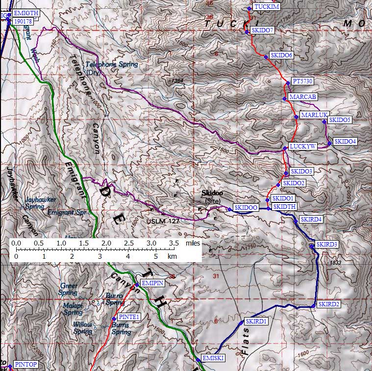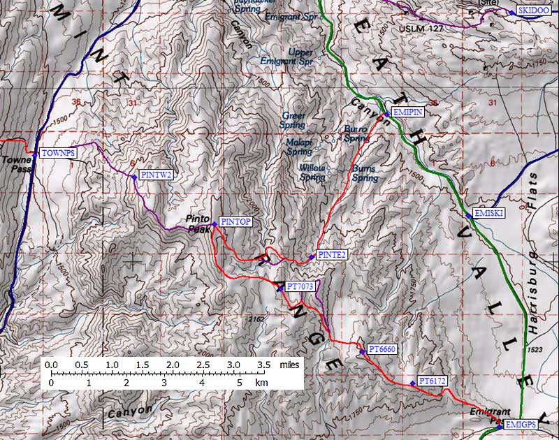 (waypoint EMIGPS) where Hwy 178 drops 7.3 miles to Wildrose Canyon (waypoint WILDCJ).