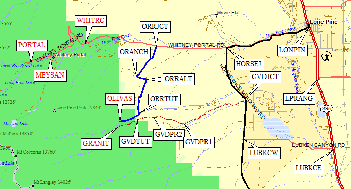 View the waypoint file (above) for GPS Routes WHITNEY PORTAL, and HWY 395 BIG PINE TO LONE PINE.
