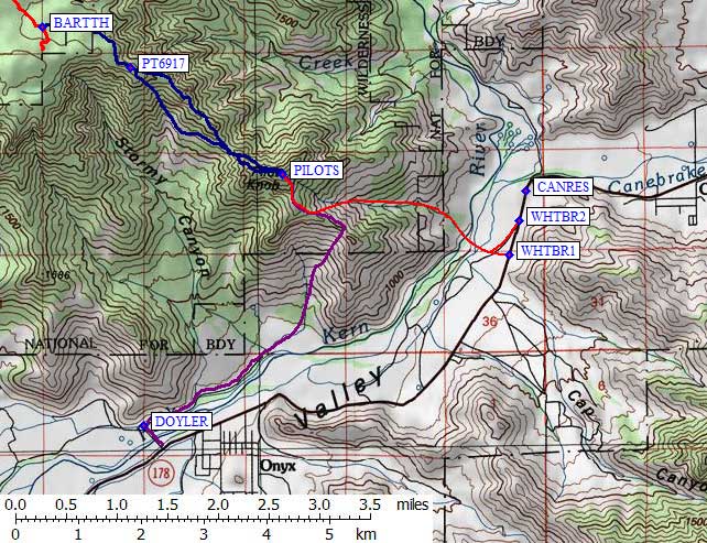 on Doyle Ranch Road (waypoint DOYLER, following the purple line on