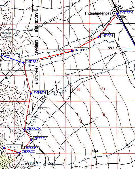 Take the Onion Valley Road (aka Market Street) west from the center of Independence (waypoint INDEPN and the only traffic light in town), but don't go all the way to Onion Valley! Turn south (left) onto unpaved Foothill Road, at the signed turn-off to Shepherd Pass (waypoint INDEPJ) about 4.5 miles from town.