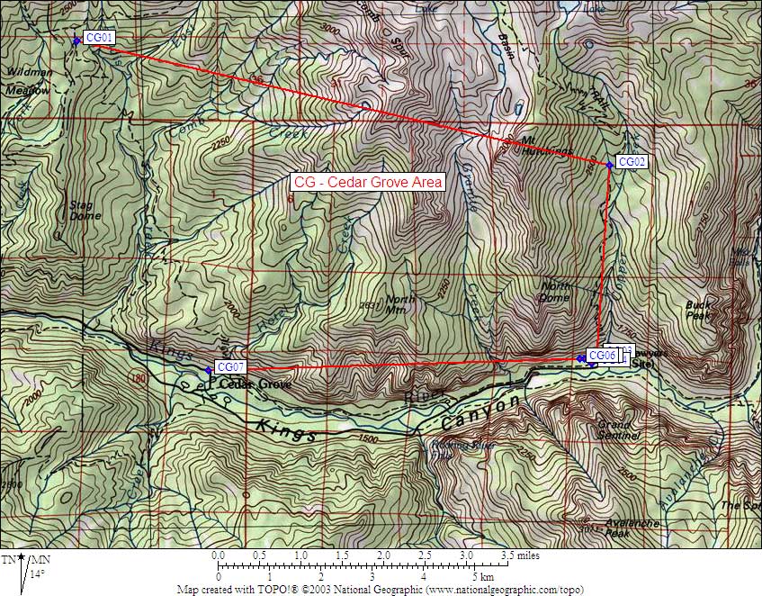 | 7 Bear Boxes in Cedar Grove Area - GPS route CEDAR GROVE | |||