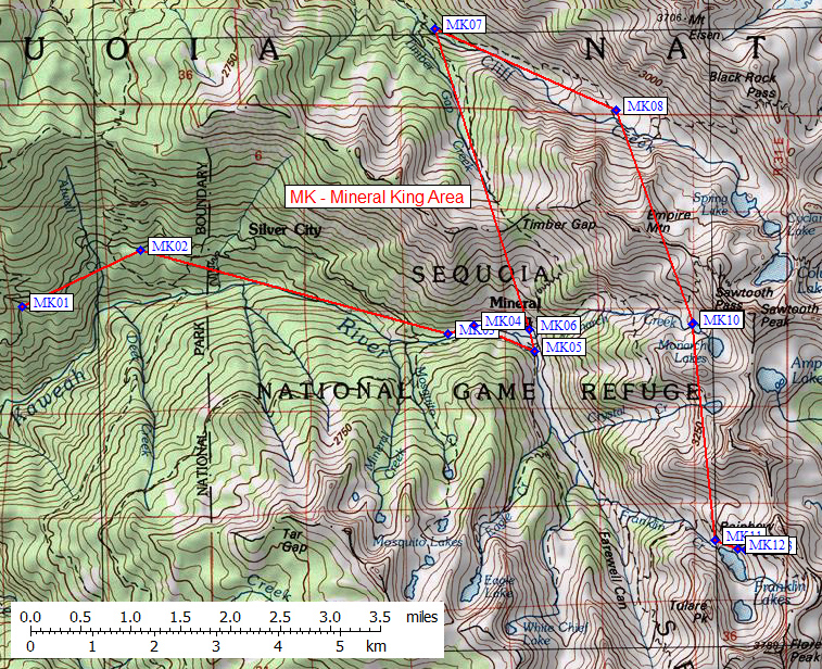 | 13 Bear Boxes in Mineral King Area - GPS route MINERAL KING | |||