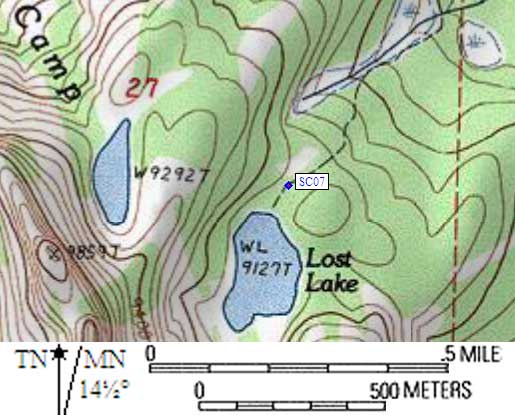 - Note: As the trail approaches the Seville Lake from the northeast, at 9100',