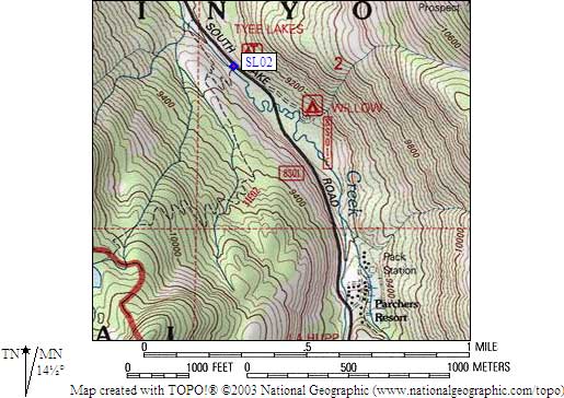 (lat,lon) = (37.1960000, -118.5646800) in decimal degrees, NAD83. (zone,east,north) = (11S, 361215.0, 4117564.0) in decimal meters, NAD27.