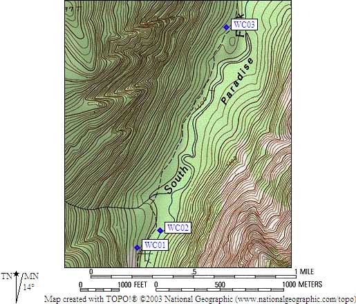 - Note: You'll be lucky to get a good GPS fix here, due to the narrow canyon and tall trees.