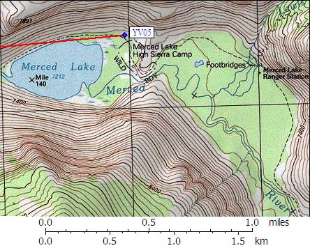 - Note: The Merced Lake Backpacker Campground is about 200 yards