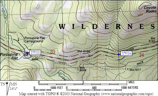 from the Porcupine Flat Campground, and the boxes are on the south side of Hwy 120.