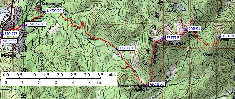 From the Chevron station in Meyers (waypoint MEYERS), go 0.3 miles