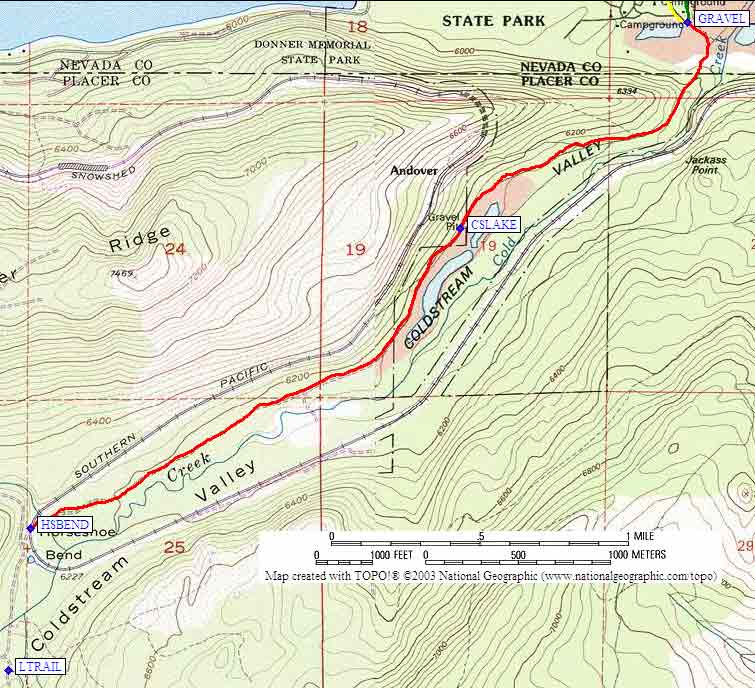 Steve Eckert's winter description: (Jan 2005) GPS route DONNER COLDSTREAM