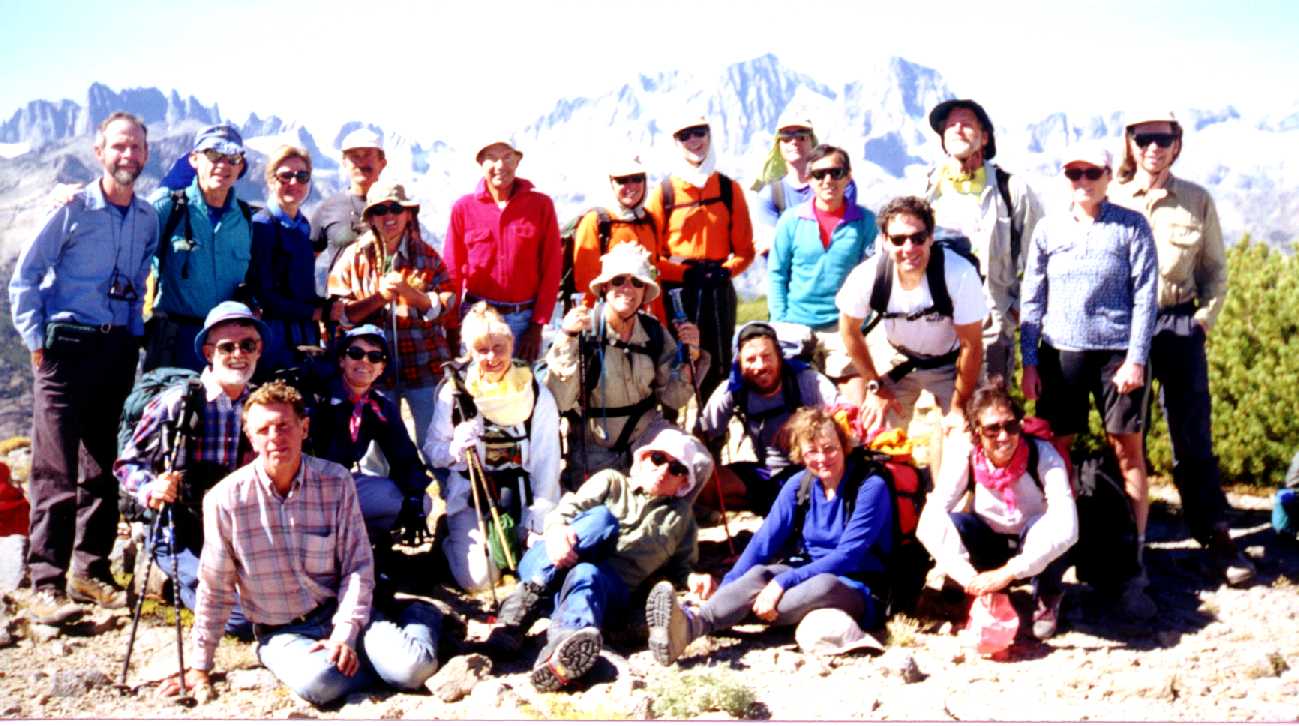 As we hiked along, fellow peak climbers reminisced and related long past and recent experiences as well as talked travel and current happenings. The aspens were displaying their fall colors: yellows through reds in the views below. We also basked in the spectacular vistas of the Minarets, Ritter and Banner and many lakes including Shadow, 1000 Island, Garnet, and Ediza. Lively discussions ensued among us, as we had much in common. Some of the people were there whom I climbed with more than 20 years ago, for example, I met Mary McMannes on a 20s and 30s Singles trip I led to Yosemite in the late 70s. And Don Sparks and I led a trip to Iron Mountain in July 1976.