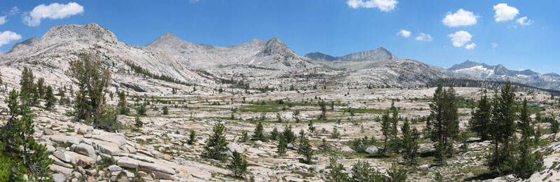 Instead of dropping into Crown Basin and going over the pass east of Hummingbird Lake (as I did in 1999) we chose go to around the north sides of Midway and Cathedral lakes, crossing the White Divide NW of Finger Peak.
